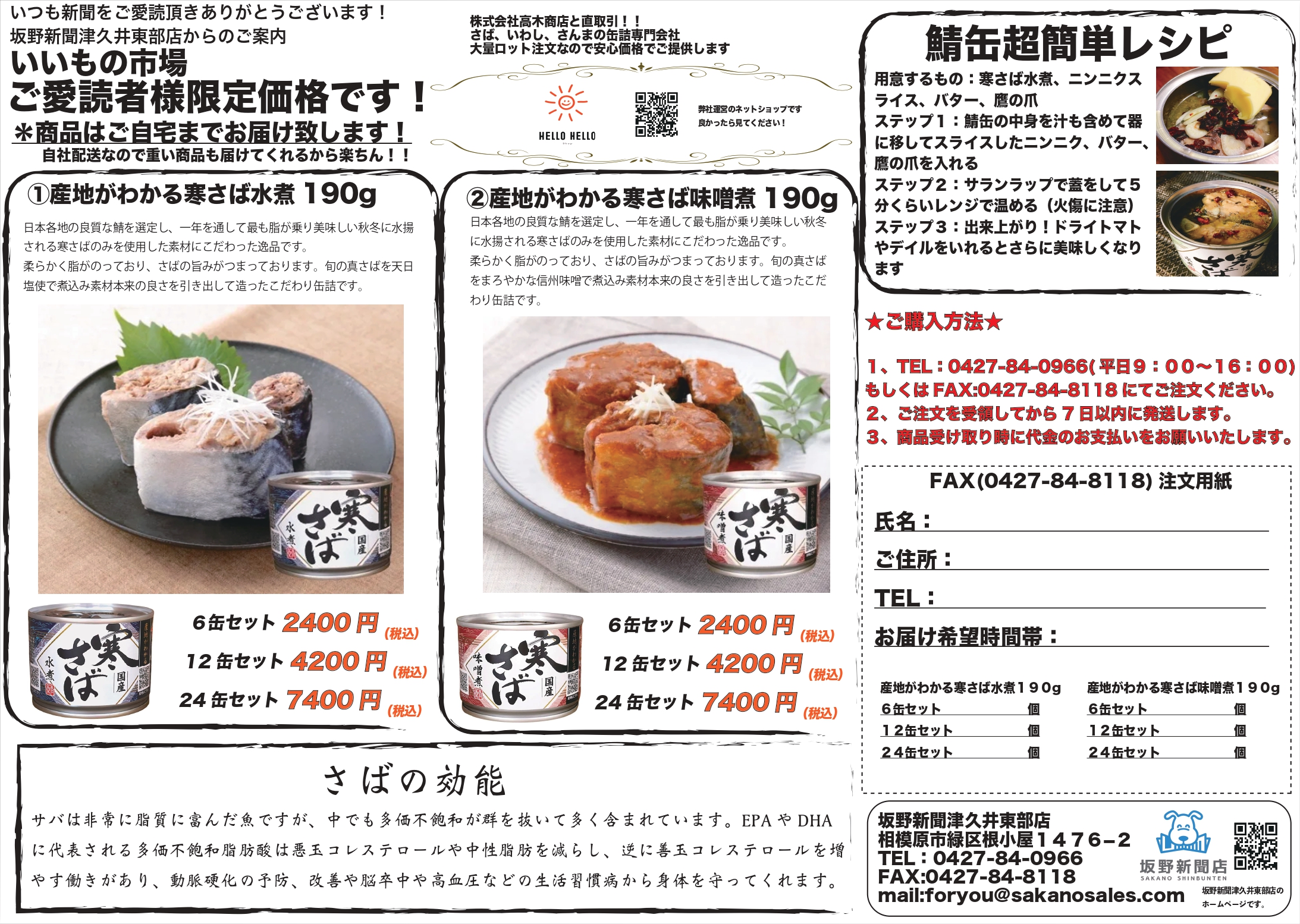 物販のご案内 2024 10/11 お知らせ 2024年10月11日 日頃よりお世話になっております。 物販のご案内です。 いいもの市場ではいい商品をメーカーと直接取引をさせてもらって販売をしております。 よろしくお願いいたします。 共有: Facebook で共有するにはクリックしてください (新しいウィンドウで開きます) Facebook クリックして X で共有 (新しいウィンドウで開きます) X いいね:いいね 読み込み中… 関連 お知らせ よかったらシェアしてね! URLをコピーしました! URLをコピーしました! 2024年4月22日読売サロンコンサートイン海老名開催します! 物販-鯖缶シリーズ この記事を書いた人 sakano 関連記事 2025/7/31日付けの東京新聞、農業新聞、工業新聞、朝日小学生新聞未着のお知らせ 2025年7月31日 悪天候の影響による配達遅れについて 2025年2月1日 2025年1月登録制古紙回収のご案内 2025年1月14日 大事なお知らせ 2024年10月25日 物販-鯖缶シリーズ 2024年10月12日 2024年4月22日読売サロンコンサートイン海老名開催します! 2024年4月18日 宝くじ購入代行のお知らせ 2023年9月23日 古新聞回収強化月間のお知らせ! 2023年9月5日 コメント コメントする コメントをキャンセルコメント ※ 名前 ※ メール ※ サイト 次回のコメントで使用するためブラウザーに自分の名前、メールアドレス、サイトを保存する。